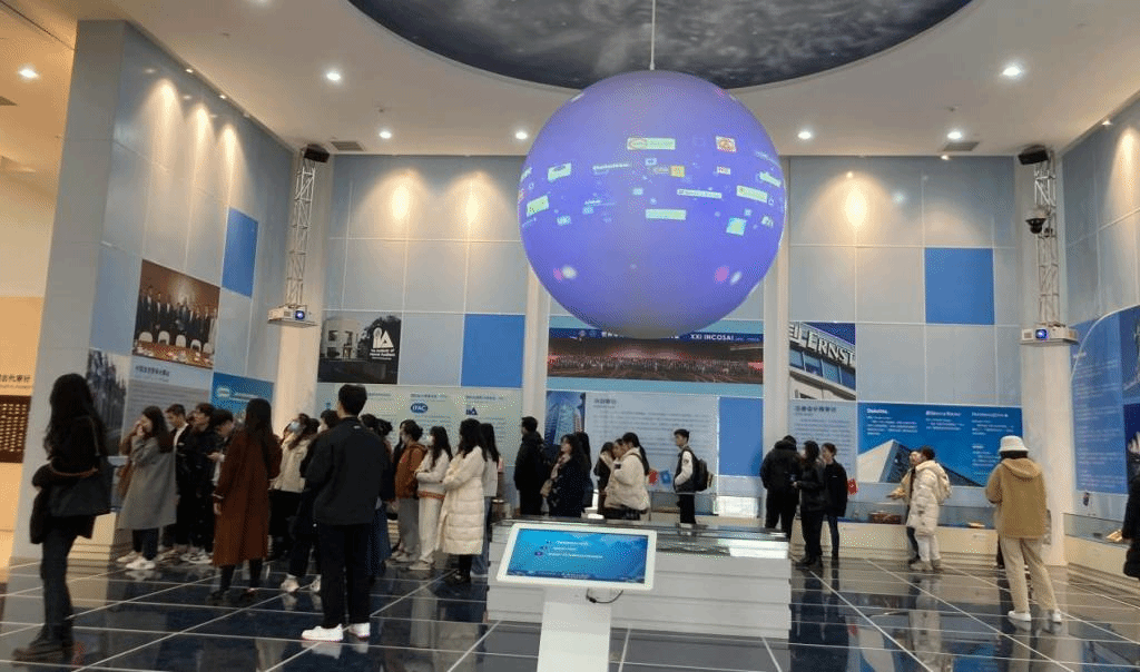 审计博物馆矗立着两扇镶嵌50种语言“审计”文字的高3米厚重铜门,随着铜门旋转开启,同学们走向了审计大世界。审计博物馆主展厅包括世界审计经纬厅、古代审计厅、近代审计厅、当代审计厅、审计技术与方法厅和审计名人廊六大展区。徜徉其中,同学们被全世界180多个国家和地区审计机关LOGO以及主要国家审计经典深深吸引;认真学习自西周以来直到清代审计发展脉络,民国时期国家审计、注册会计师审计和内部审计发展概况,以及当代我国国家审计的法律法规、组织制度、名人教导等;细心品味南宋第一枚审计官印、明代城墙砖、云锦官服补子等藏品以及仿活字印刷审计文字墙、汉武帝受计大会模拟场景、唐代太仓审计模拟场景等生动展现的源远流长审计文化;虚心学习人民审计制度奠基人阮啸仙等先贤名人为审计事业鞠躬尽瘁的奉献精神,表达对审计教育杰出贡献者的无比崇敬、感怀和无限追忆。