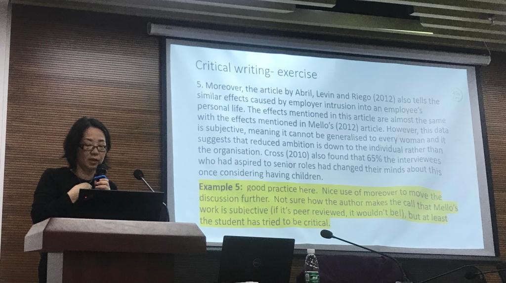 陈之峰老师的报告涵盖了上市公司年报解读、可持续发展报告(GRI)介绍、英文文献阅读和学术论文写作等重要话题,内容丰富详实、主旨突出。在第一天的报告中,陈老师详细地讲述了上市公司年度报告的结构、GRI报告的内容以及发展趋势等前沿信息。陈老师指出,GRI报告应当披露企业对经济、环境和公众可能产生的影响,其目的是帮助利益相关者认识企业现阶段面临的问题从而做出明智的决策。在第二天的报告中,陈老师讲述了预览、略读、跳读和精读等四个高效阅读英文文献的技巧,引导同学们根据自己的写作需求快速选择合适的文献进行有效阅读。陈老师提醒同学们在阅读过程中不仅要学会如何根据文章内容推理其中的隐含信息,还要做到全面客观地评价所阅读的文献,不能以偏概全。在第三天的报告中,陈老师向同学们分享了学术论文写作的思路和技巧,并通过练习题的方式,启发同学们进行深度思考。陈老师指出,在阐述已有学者的研究成果时,要学会用自己的语言将他人的研究成果进行正确地表述,同时在写作时还应注意,不能曲解与改变已有文献的研究结论来佐证自己的论文观点。