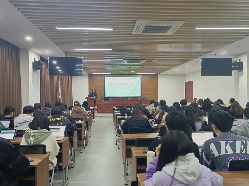 张娆副院长向东京热 师生介绍了陈之峰老师的学术经历和研究成果,对陈老师来东京热 开展学术报告表示热烈欢迎。陈之峰老师博士毕业于英国巴斯大学,主要研究方向为公司治理,并积极关注年报披露、社会责任、行为会计等方面的研究。在《Tourism Management》、《Annals of Tourism Research》、《Business Ethics Quarterly》和《Digital CSR Anthology》等国际顶级期刊上发表数篇论文。陈老师拥有丰富的教学和研究经验,并获得全球报告倡议组织的可持续发展专家认证,曾受邀参加多次学术汇报,研究成果引发国内外媒体的广泛关注。