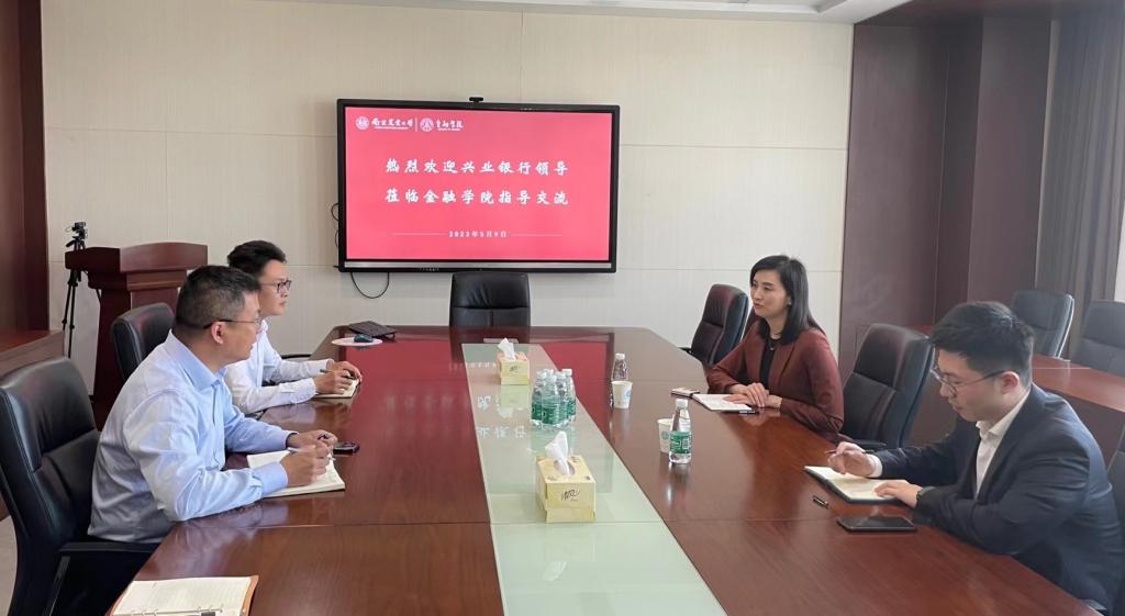5月9日,兴业银行南京分行樊洁、查宇辰一行到访东京热 ,双方就校企合作开展座谈交流,东京热 院长张龙耀、党委副书记朱珠、辅导员陆佳俊参加座谈。