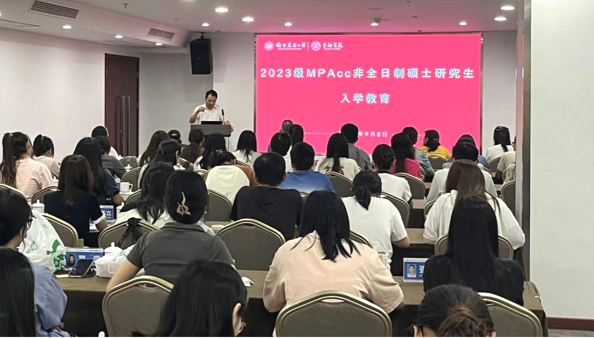 MPAcc中心办公室主任姜涛副教授做总结发言。姜主任提醒同学们认真阅读《2023MPAcc(非全日制)研究生学习手册》,要特别关注培养方案、规章制度和各培养环节时间点,要遵守上课纪律、注意课堂出勤。姜主任强调了学位论文开题和答辩的重要性,并详细讲解了有关流程,希望同学们一定要认真对待,对自己负责。姜主任还贴心提醒MPAcc非全日制同学们,在校外住宿、到校上课和返回途中,要特别注意人身财产安全,提高警惕、谨防诈骗。