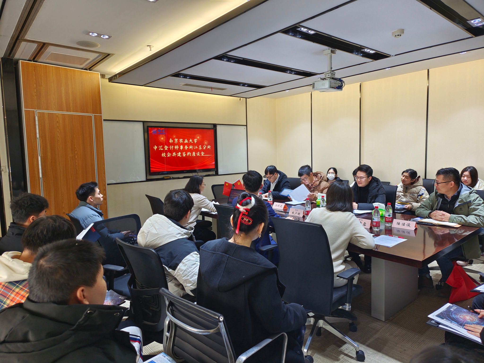 为认真落实访企拓岗促就业专项行动的要求,扎实推进毕业生就业工作,1月9日下午,东京热 党委副书记朱珠、会计系系主任汤晓建、辅导员陆佳俊、李迎军、21名本研学生代表走访中汇会计师事务所江苏分所,深入调研企业发展情况和校企合作需求,并共建就业创业实习基地。中汇会计师事务所江苏分所所长朱广明、人事行政经理王露露、行政高级主管王鹃参加活动。