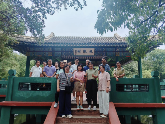 经过一段轻松的徒步后,教师们最终抵达本次活动的终点——流徽榭。作为紫金山的标志性景观之一,流徽榭三面环山、一面临水,湖面碧波荡漾,岸边垂柳依依,绝佳的自然风光让老师们身心得到充分放松。大家在此合影留念,定格下教师节前夕的美好瞬间。