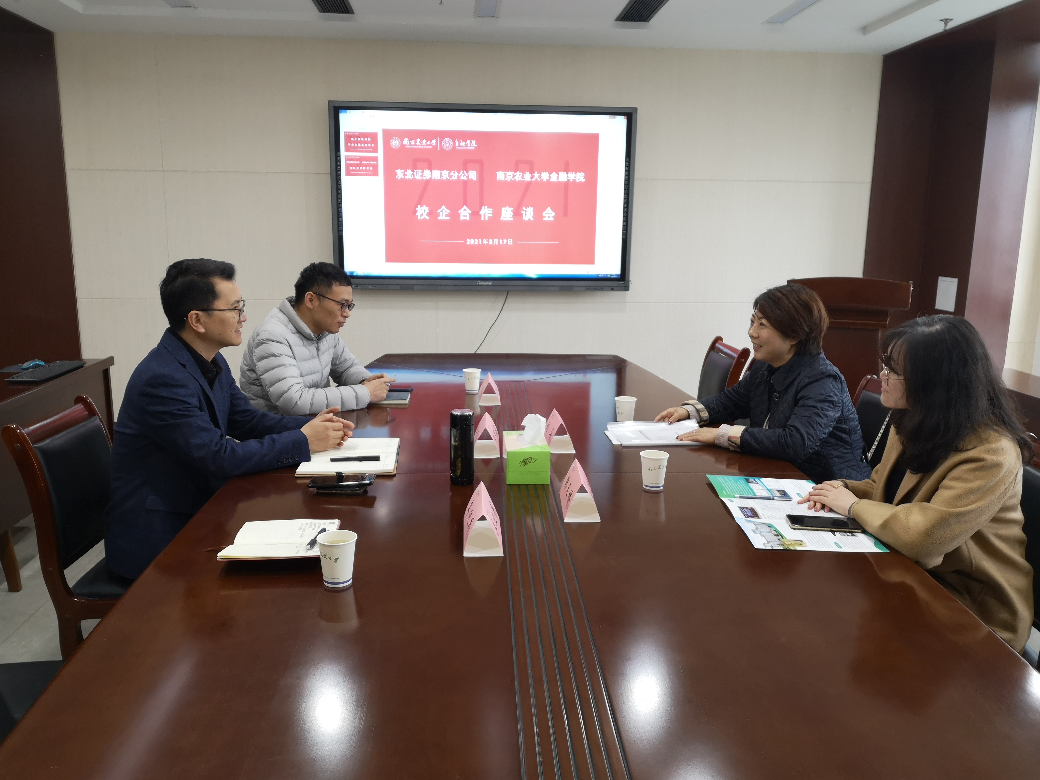 东北证券南京分公司刘华副总经理介绍了东北证券的发展历程,介绍了南京分公司的人员架构和网点分布情况,期望与南农东京热 在实习、校园招聘方面开展合作。财富总监韩天娇则对新入职员工的培养方案和晋升渠道做了介绍。