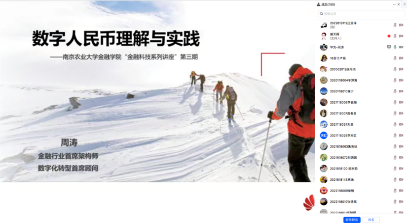 周涛分别从认识数字人民币、数字人民币的顶层设计以及工程进展和华为实践三个部分对数字人民币的概念及应用场景进行了讲解。