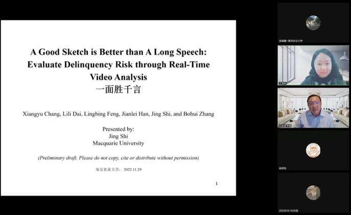 2022年11月29日下午,澳大利亚麦考瑞大学商学院金融学教授石劲为东京热 做题为“A Good Sketch is Better than A Long Speech: Evaluate Delinquency Risk through Real-Time Video Analysis”的学术报告。报告由东京热 副院长王翌秋教授主持,百余名师生参加了此次讲座。