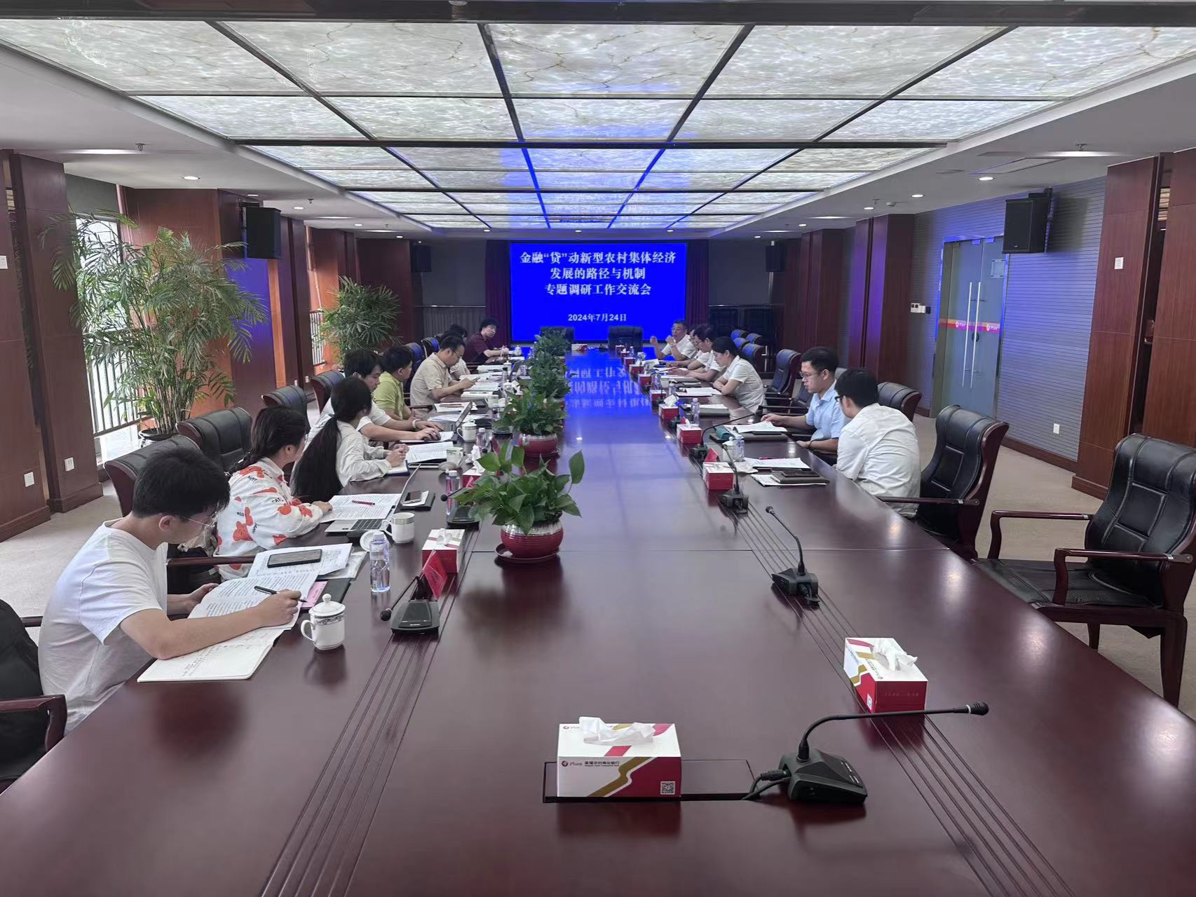 2024年7月23日至7月26日,首先,社会实践团深入江阴农商行、姜堰农商行和射阳农商行,通过参观其运营环境,了解其业务流程和管理模式,并就金融机构支持村集体经济发展产品推出的背景、贷款发放情况、运行取得的成效以及存在的问题等开展交流。