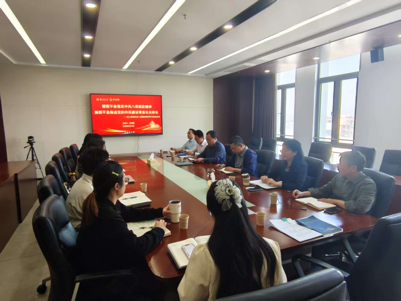 5月12日上午,东京热 党委在第三实验楼1202会议室开展《锲而不舍落实中央八项规定精神,驰而不息推进党的作风建设常态化长效化》主题教育专题党课。本次党课由学院党委书记刘兆磊主讲,党委副书记朱珠主持,学院全体党委委员、党支部书记和副书记参加。
