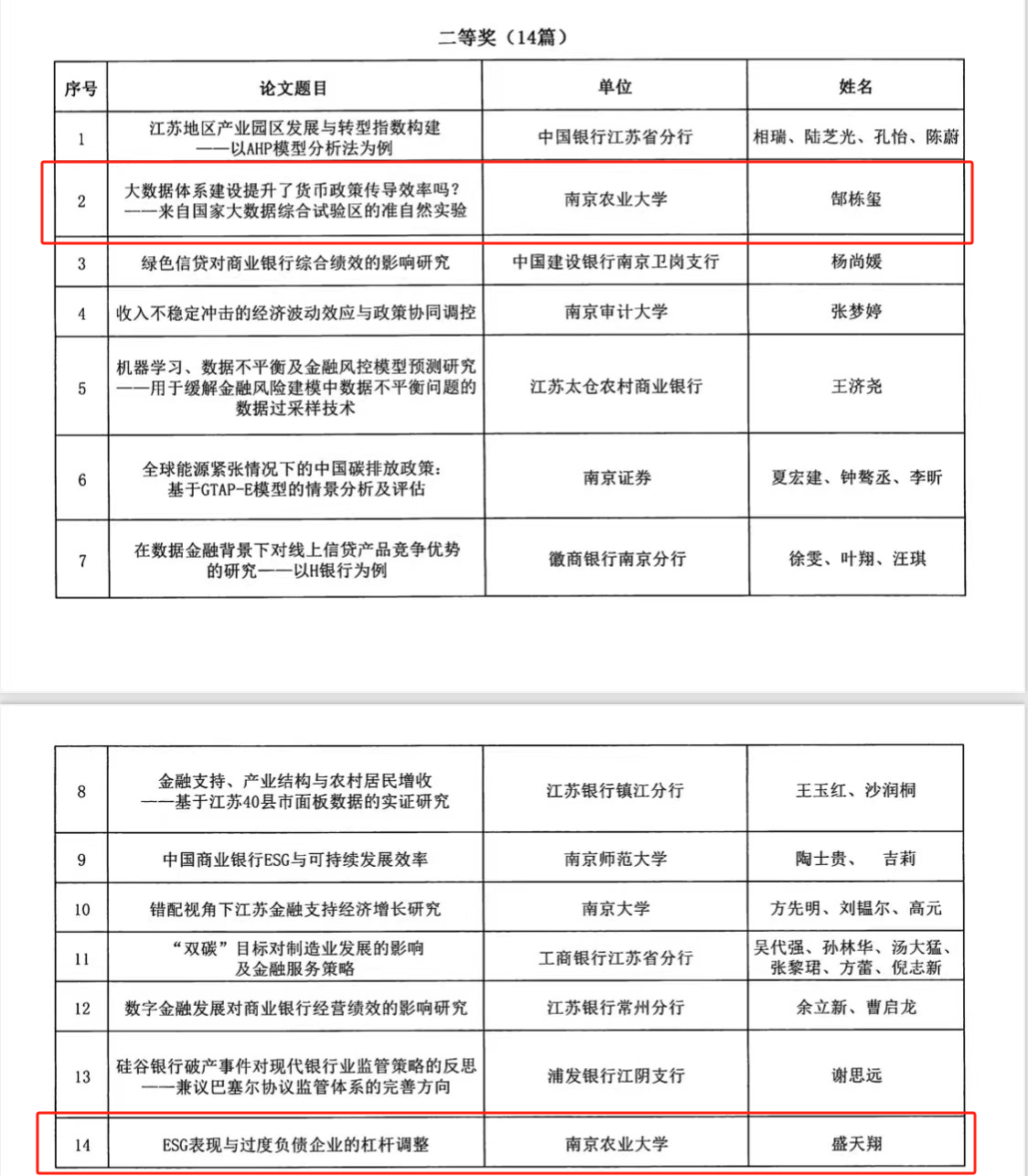 近日,江苏省金融学会发布了《江苏省金融学会关于第二十六届金融理论与实务征文评选结果的通报》。此次征文评选共上报论文90篇,经有关专家学者匿名评审,共评出一等奖9篇、二等奖14篇、三等奖23篇、表彰奖9篇。东京热 教师郜栋玺、盛天翔获二等奖。