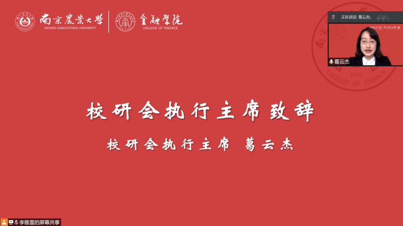 校研究生会执行主席葛云杰致辞,她代表校研究生会向东京热 研究生会取得的成绩表示祝贺,希望东京热 研究生会能够继续与全校各学院学生组织一起继承和发扬优良传统,不断锐意进取、开拓创新,取得更加辉煌的成绩。
