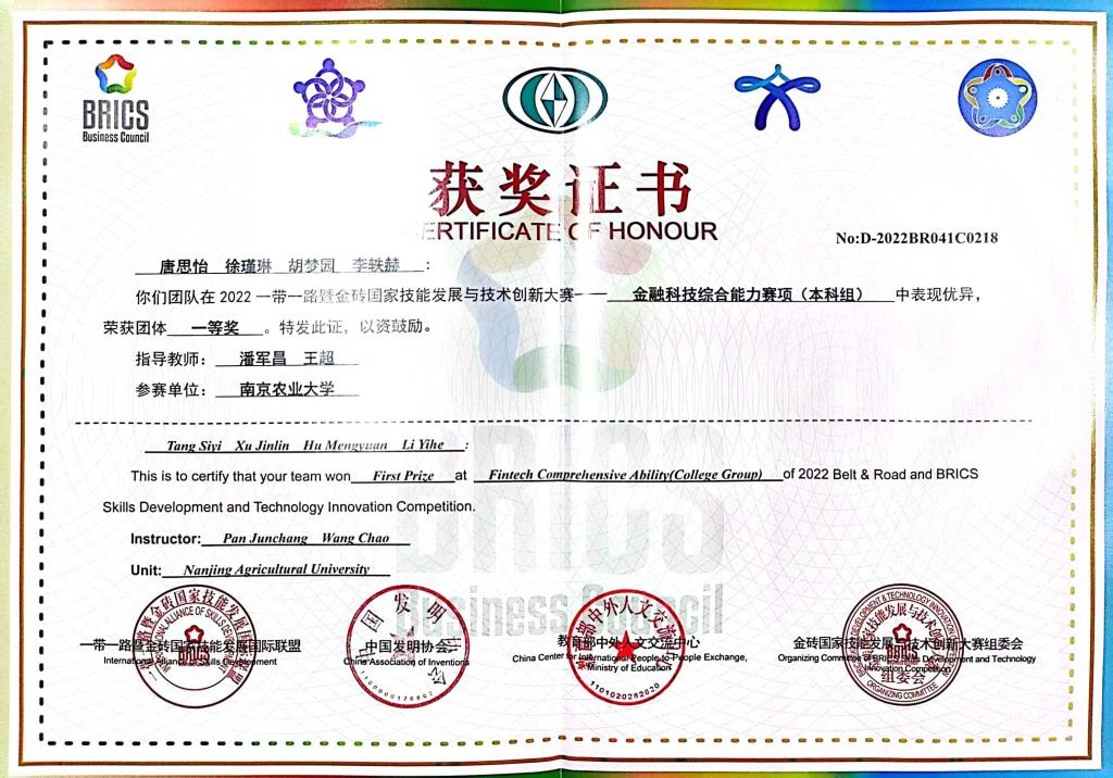 近日,2022一带一路暨金砖国家技能发展与技术创新大赛结果正式公布,东京热 团队荣获金融科技综合能力赛项(本科组)团体一等奖,学院荣获最佳组织奖。