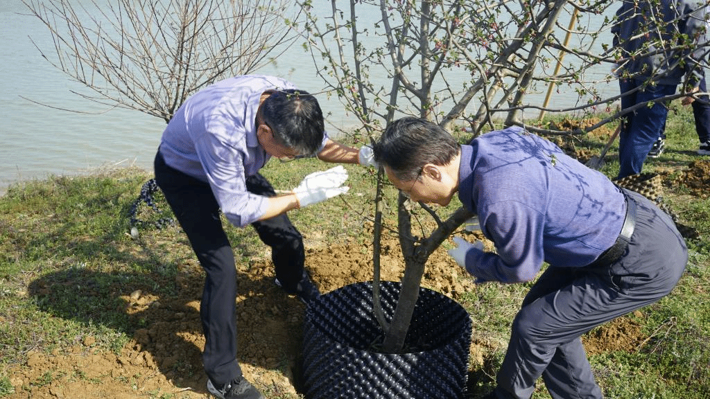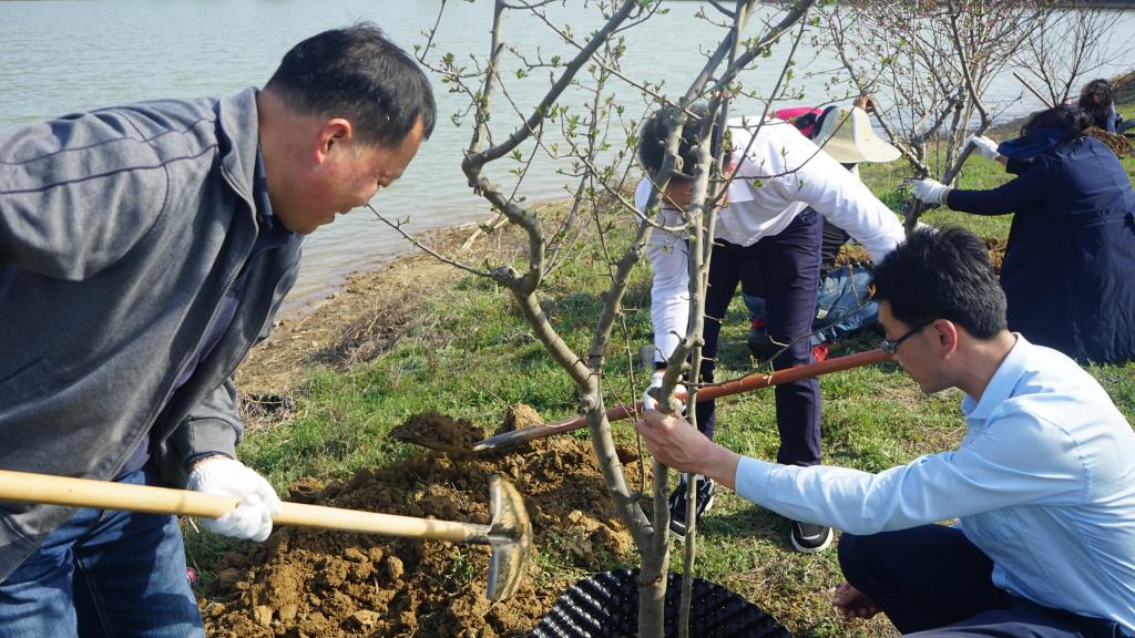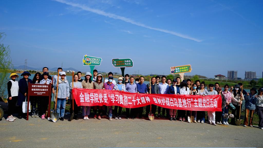 在白马湖畔,大家挥锹铲土、培土围堰、提水浇灌……,20多棵海棠、桂花等树苗一一种下,现场一派繁忙景象,参加劳动的各位师生亲切交流,气氛热烈。植树间隙,刘兆磊强调,党的二十大报告中提出必须牢固树立和践行绿水青山就是金山银山的理念,推进美丽中国建设,学院师生要做生态文明建设的实践者推动者,让祖国天更蓝、山更绿、水更清、生态环境更美好。作为农业院校的金融学子,师生们要利用农村金融研究特色,投身乡村振兴与农业农村现代化主战场,坚定肩负起建设农业强国的使命担当。刘兆磊表示,参加这次活动的既有教师党支部,也有本研党支部,希望大家加强支部共建,在农事中体验农耕文明,在躬耕实践中推进耕读教育探索,增强师生们的知农爱农情怀。