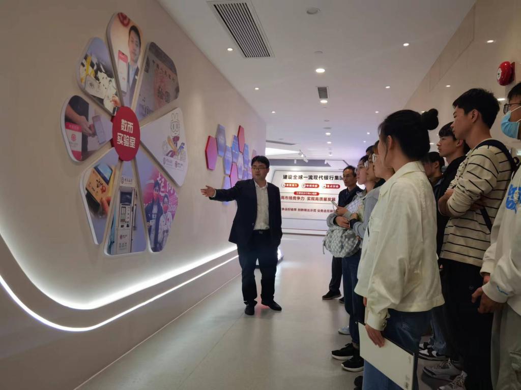 3月9日下午,东京热 组织师生前往中国银行江苏省分行数字人民币创新应用实验室参观学习,并就数字人民币相关问题进行座谈交流。中国银行南京分行个人数字金融部副总经理姚赟、主办徐明、金融系教师潘军昌、辅导员徐冰慧及学生代表参加了此次活动。