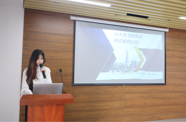 决赛项目展示环节中,晋级决赛的六支队伍就“人工智能下科大讯飞的商业模式”这一案例展开了详细的分析汇报。经过激烈的角逐,最终李英杰团队获得一等奖;顾思涵团队、刘雨函团队获得二等奖;鞠子逸团队、陈星妤团队、李硕团队获得三等奖。