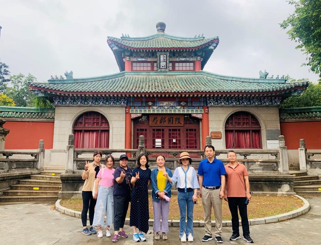 本次活动路线为经紫金山绿道下马坊驿站,沿民国邮政博物馆、南京地震科学馆步行至终点流徽榭。绿道两旁绿树葱郁、景色宜人,行走其间在呼吸中感受自然清凉。大家一路说说笑笑很快就到达了陵园邮局,以仿古的八角亭建筑为背景老师们拍下如画般的美景。