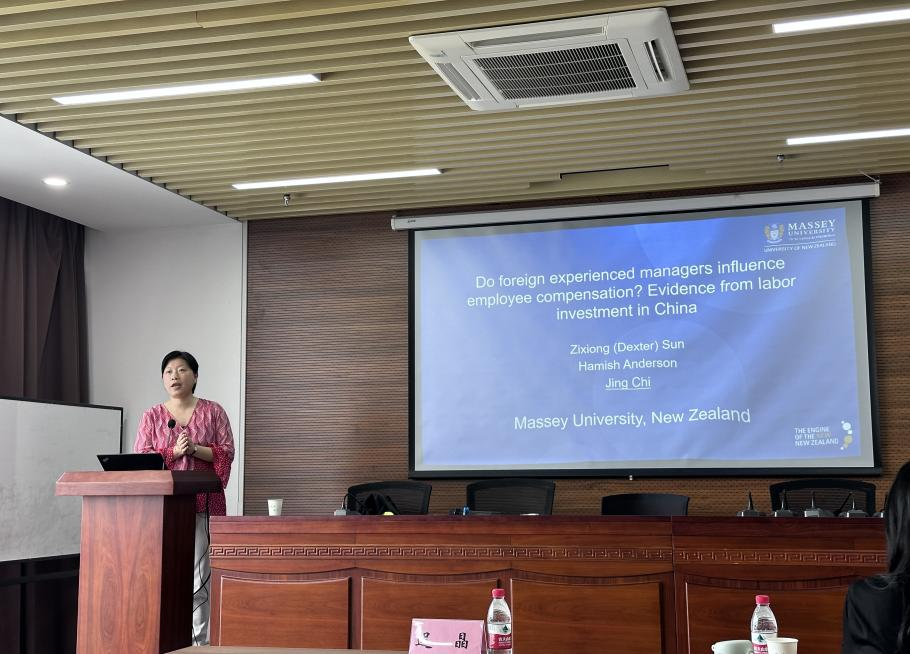 9月22日上午,新西兰梅西大学经济与东京热 迟晶教授受邀为东京热 做题为《Do foreign experienced managers influence employee compensation? Evidence from labor investment in China》的学术报告。报告由东京热 副院长张娆教授主持,学院近百名师生参加。