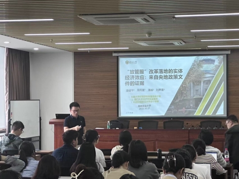 10月27日下午,东南大学经济管理学院财务与会计系副教授潘健平受邀为东京热 做题为《“放管服”改革落地的实体经济效应:来自央地政策文件的证据》的学术报告。报告由东京热 会计系主任汤晓建副教授主持,学院近百名师生参加。