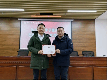 讲座现场,东京热 聘请李子豪先生为校外导师,东京热 院长张龙耀教授颁发了聘书。