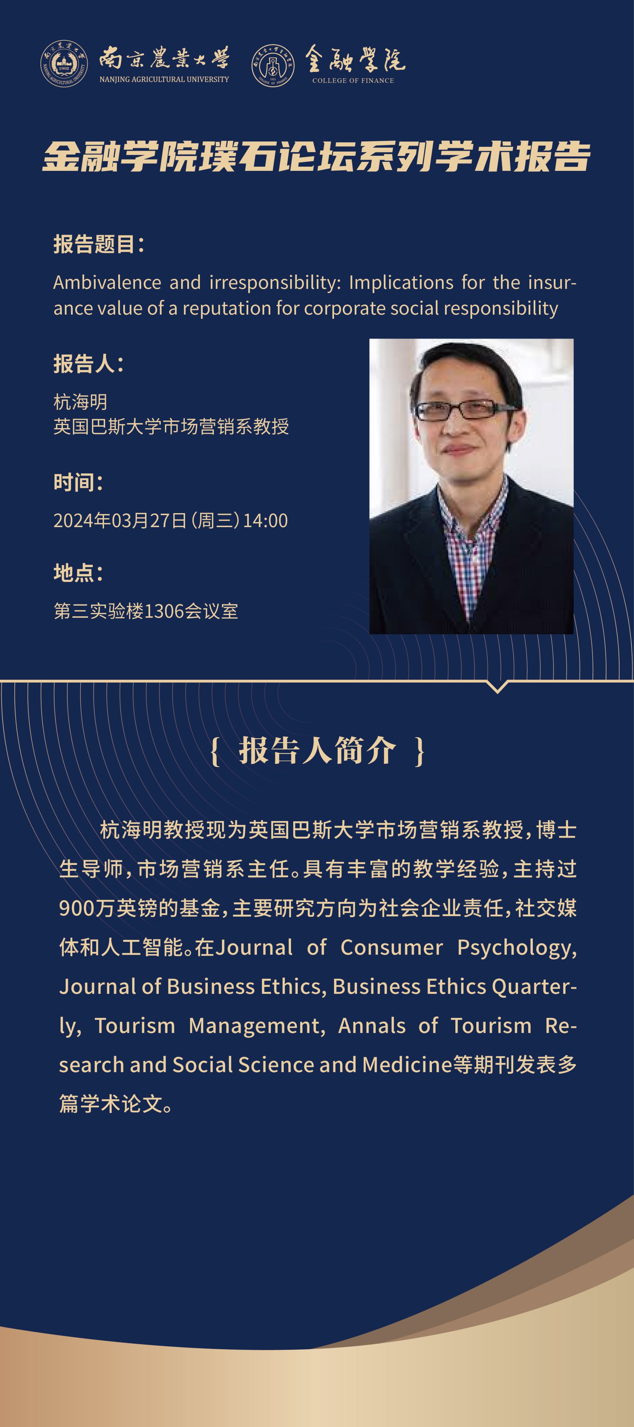讲座预告(03.27)丨英国巴斯大学杭海明教授讲座