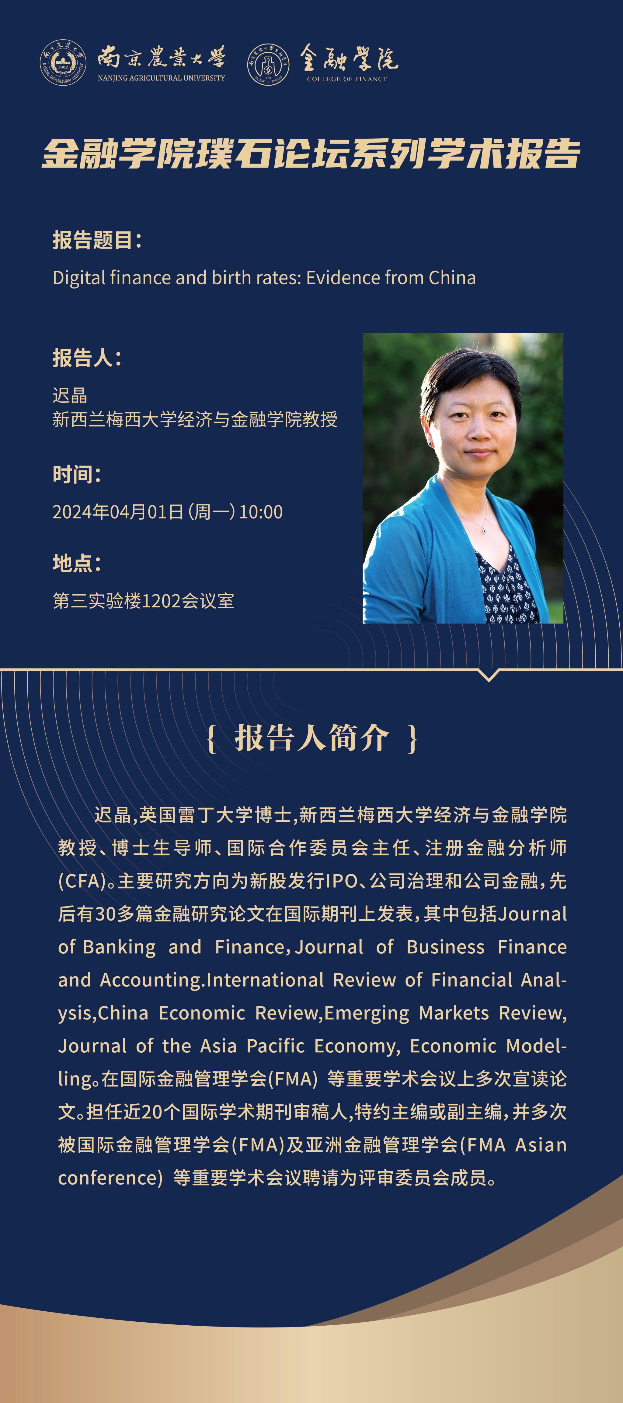 讲座预告(04.01)迟晶教授学术报告预告