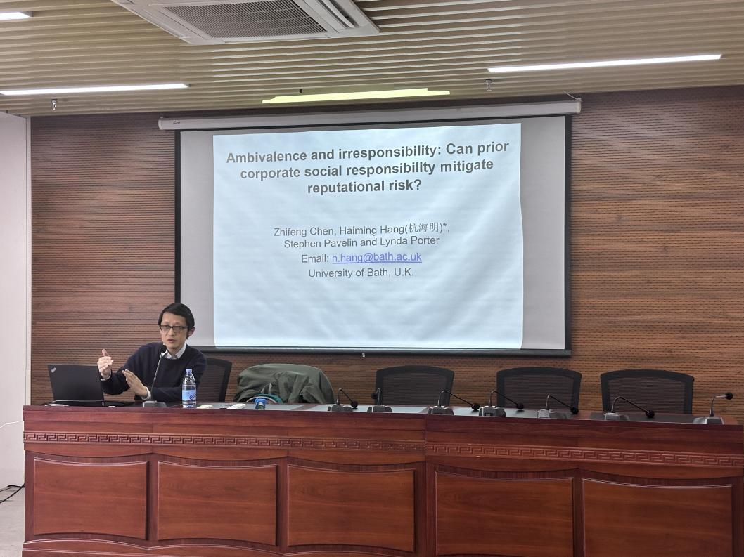 3月27日下午,英国巴斯大学市场营销系杭海明教授受邀为东京热 做题为《Ambivalence and irresponsibility : Implications for the insurance value of a reputation for corporate social responsibility》的学术报告。报告由东京热 吴雅倩老师主持,学院近百名师生参加。