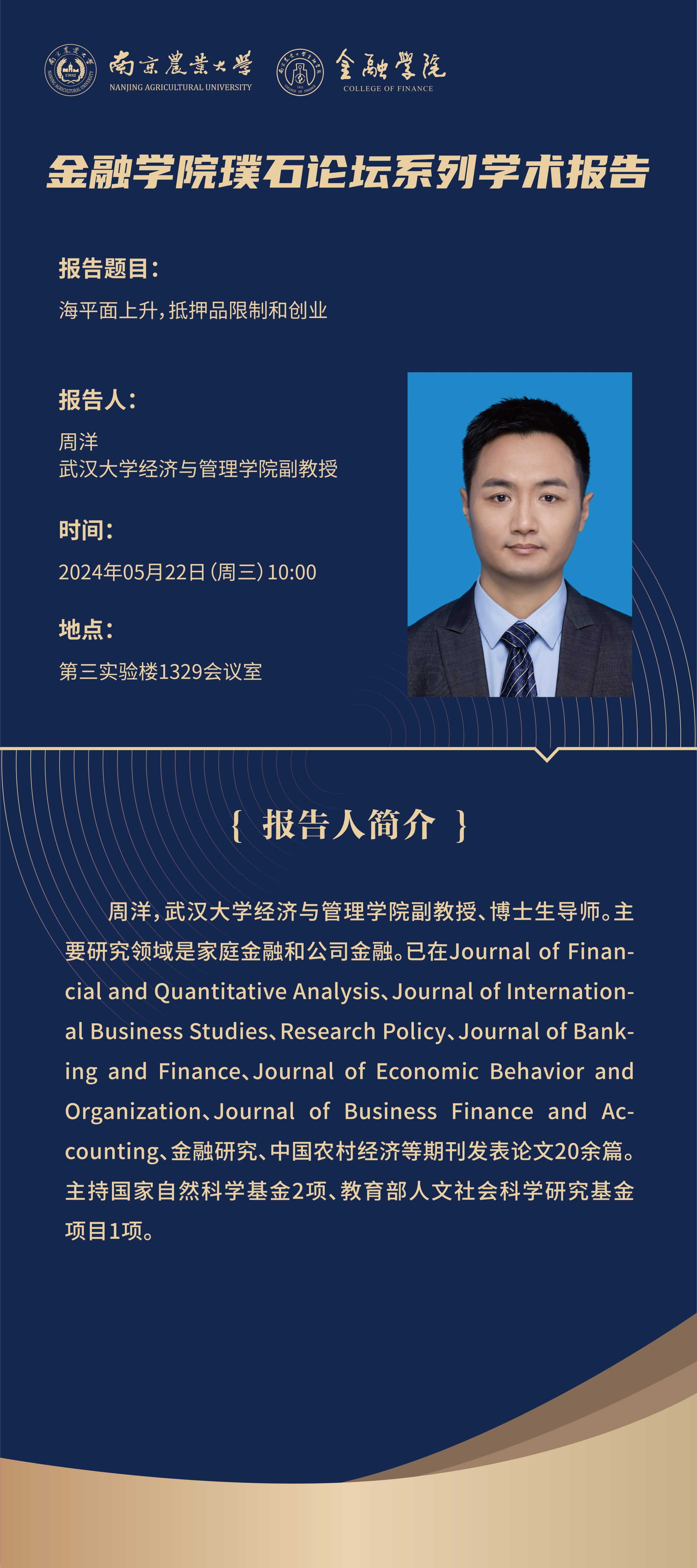 讲座预告(05.22)武汉大学经济与管理学院副教授周洋学术报告