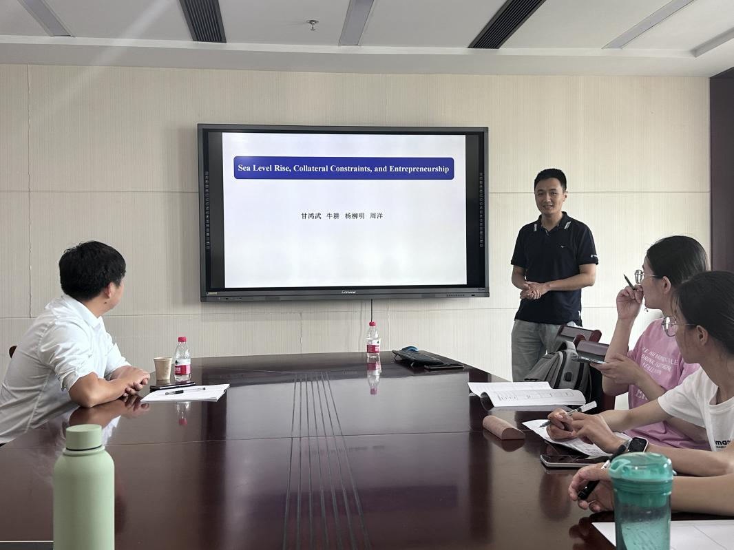 吴雨对周洋受邀开展学术报告表示欢迎。周洋是武汉大学经济与管理学院副教授、博士生导师。主要研究领域是家庭金融和公司金融,已在多个顶级期刊发表论文20余篇。主持国家自然科学基金2项、教育部人文社会科学研究基金项目1项。