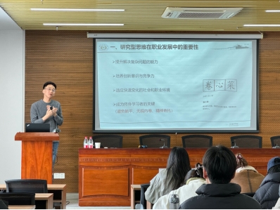 他从研究型思维在职业发展中的重要性讲起,强调培养创新意识和竞争力的重要性。他表示,研究型思维的核心要素包括战略思维、历史思维、辩证思维等。他结合自己自身的职业经历,和大家分享了在中国银行工作的一些感悟和体会,并结合现实案例为大家阐明研究型思维的重要性。讲座最后,他对同学们的学习生涯和未来的职业道路提出了建议和期待。