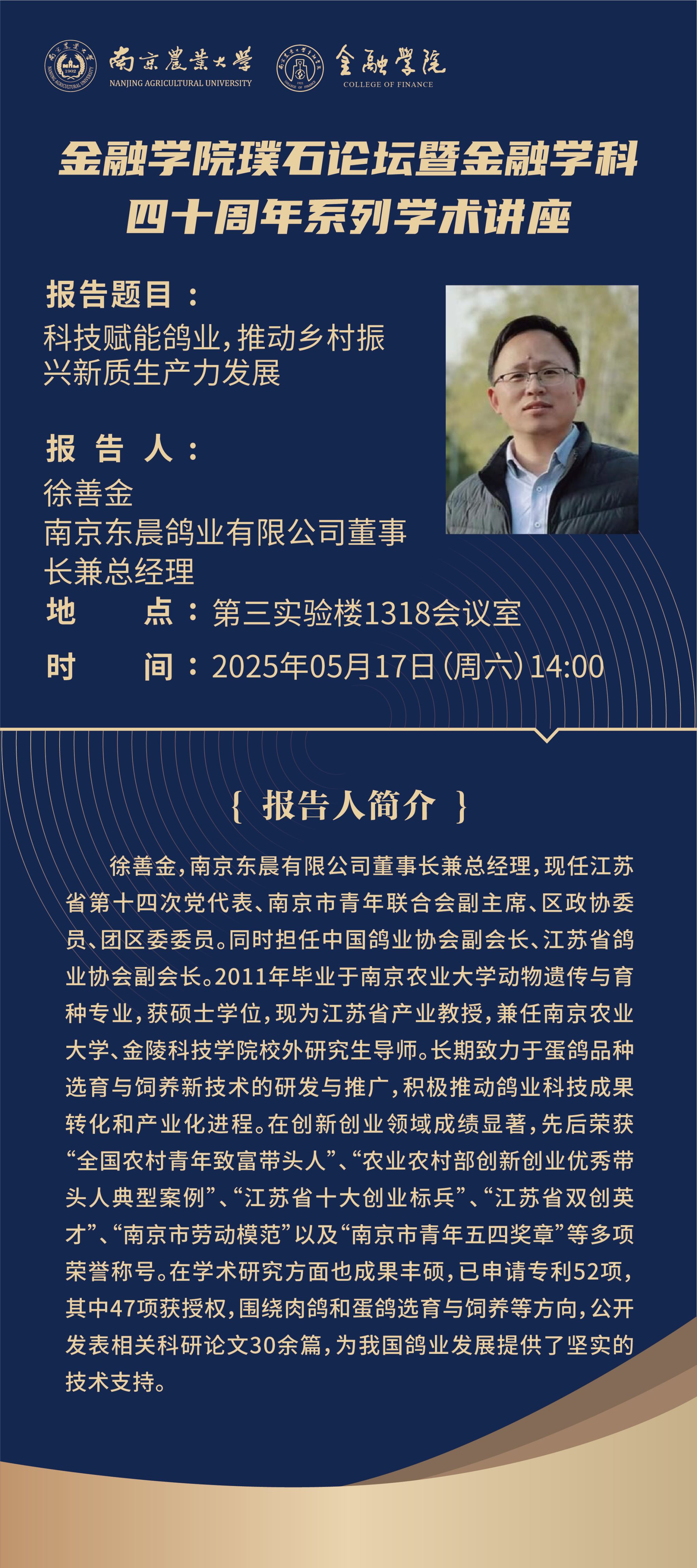 讲座预告(05.17)丨科技赋能鸽业,推动乡村振兴新质生产力发展