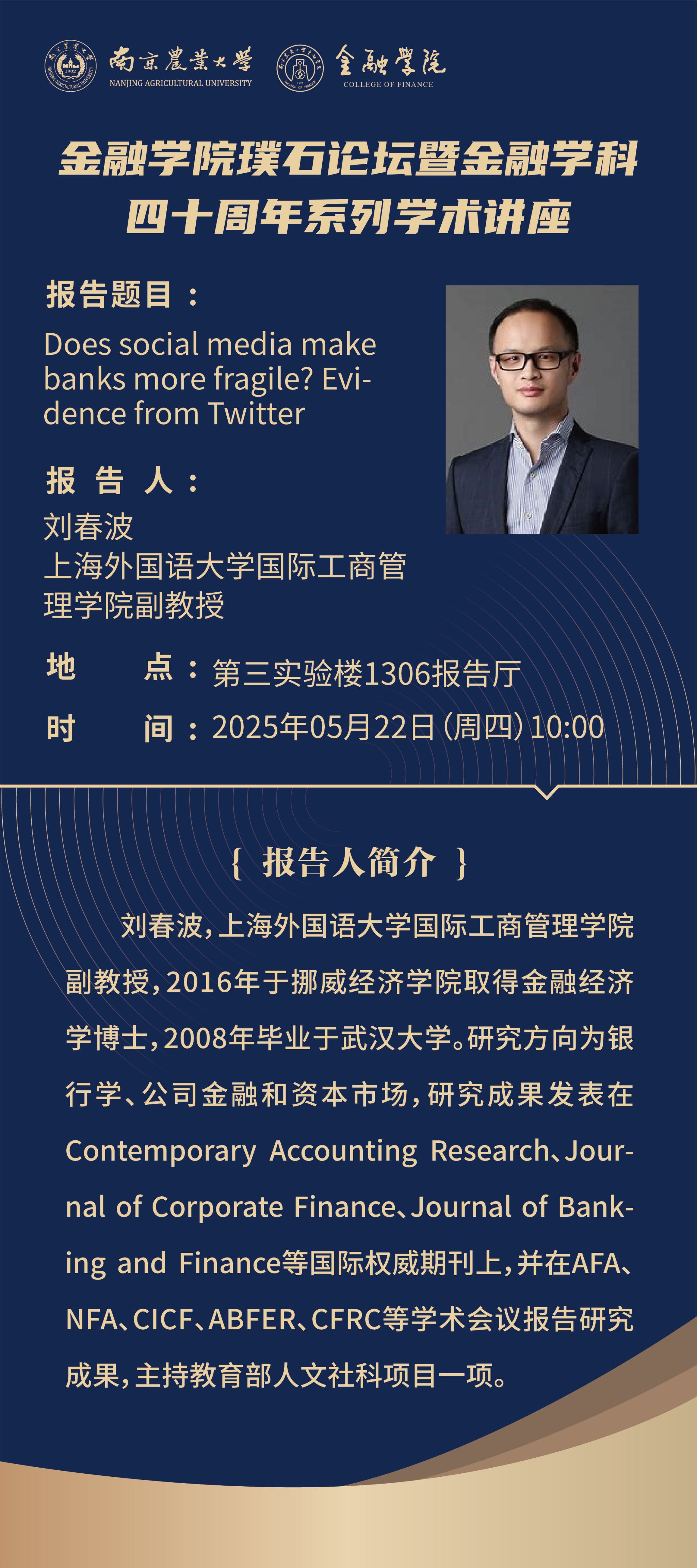 讲座预告(05.22)丨Does social media make banks more fragile? Evidence from Twitter
