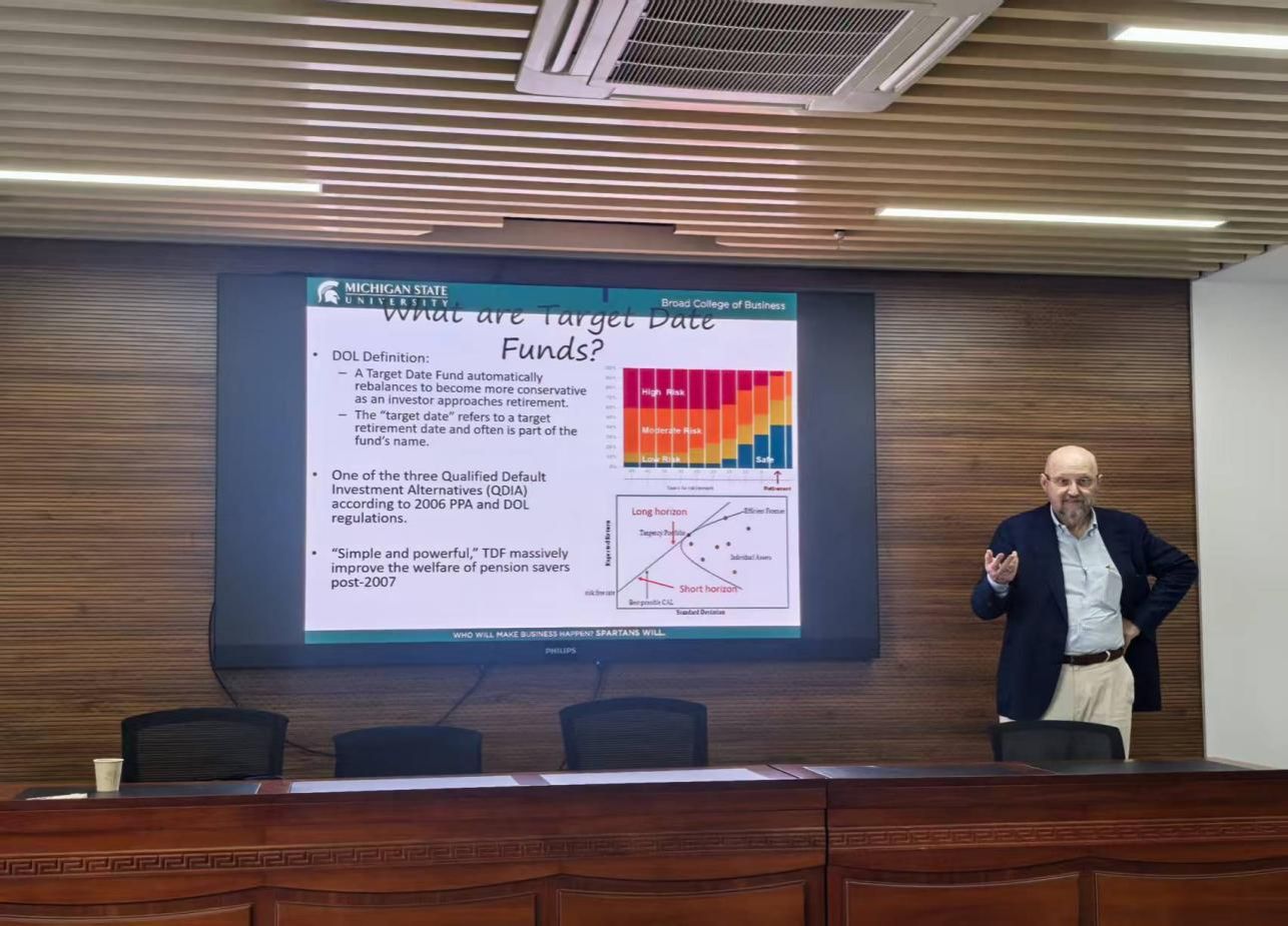 Andrei Simonov教授的研究聚焦于美国养老金体系中广泛使用的目标日期基金,指出尽管TDF作为“合格默认投资选择”之一,显著提升了退休储蓄者的整体福利,但其运作机制存在显著缺陷。Simonov 教授强调,TDF 的投资者普遍缺乏监督意识,而基金公司则倾向于将资金投向自家旗下表现较差或面临资金流出的基金,尤其是主动管理型产品,以缓冲流动性冲击。这一行为导致长期TDF表现显著不佳,其隐含的第二层费用高昂,且投资选择往往不利于长期投资者。研究进一步呼吁建立清晰的业绩基准、推动开放式架构,并提升底层基金质量,以优化TDF作为退休投资工具的实际效能。交流讨论环节,学院师生就讲座内容进行提问,Andrei Simonov教授予以耐心解答,并对研究生的学习和科研提供专业建议。